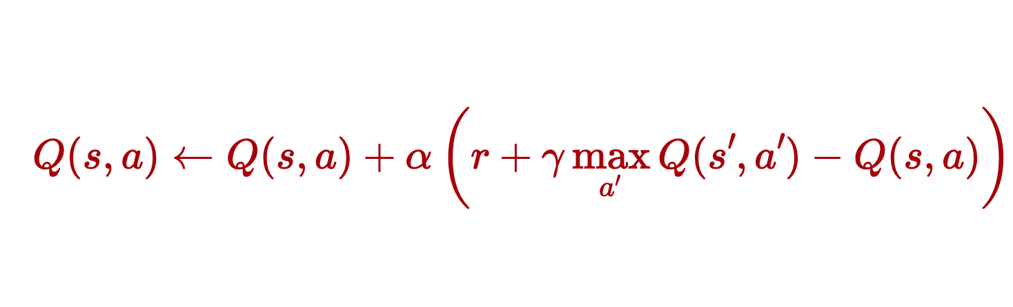 Q(s,a) ← Q(s,a) + α [ r + γ maxa′Q(s′,a′) − Q(s,a) ]